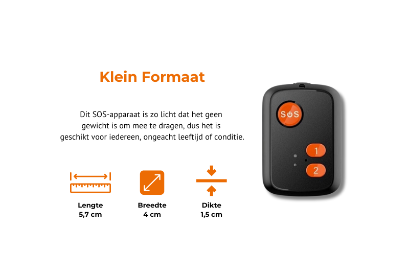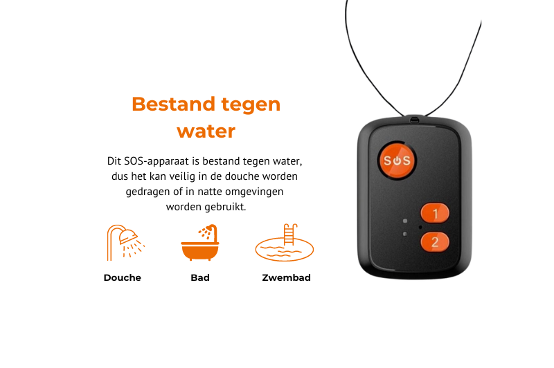 Met een SOS-knop op uw pols of nek heeft u altijd directe hulp binnen handbereik. In noodgevallen drukt u eenvoudig op de knop om contact op te nemen met drie vooraf ingestelde contactpersonen. De oproep wordt via het 4G-netwerk gemaakt, zodat u overal in Nederland geholpen kunt worden.